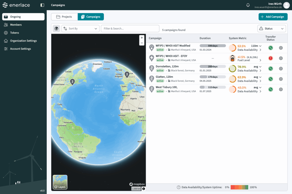 Moli provides a shared view of wind measurement campaigns, helping teams understand data availability, quality indicators, and ongoing issues without relying on manual checks.